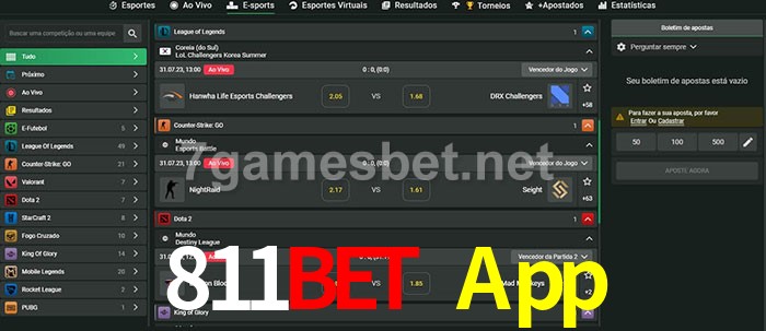 O 811Bet App oferece uma grande seleção de opções de apostas em e-sports com probabilidades competitivas